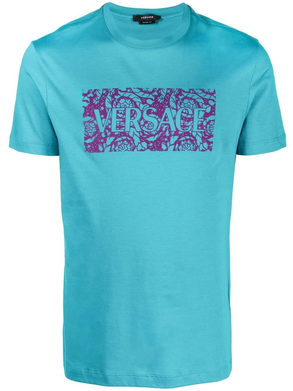 This logo-print T-shirt epitomises Versace's maximalist vision in its blue and purple colour palette and decorative lace-print design.