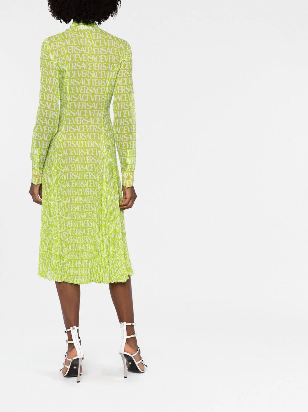 This two-tone midi dress from Versace finely demonstrates the label's branding-focused style, thanks to an all-over logo print. This silk-made piece is further elevated by a classic pussy-bow collar.