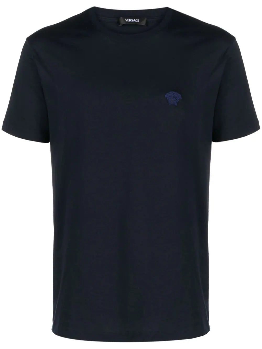 A heritage motif for the brand, Versace's Medusa head was first introduced in 1993. Since then it has appeared throughout their collections, including as an embroidered detail at the chest of this black cotton T-shirt.