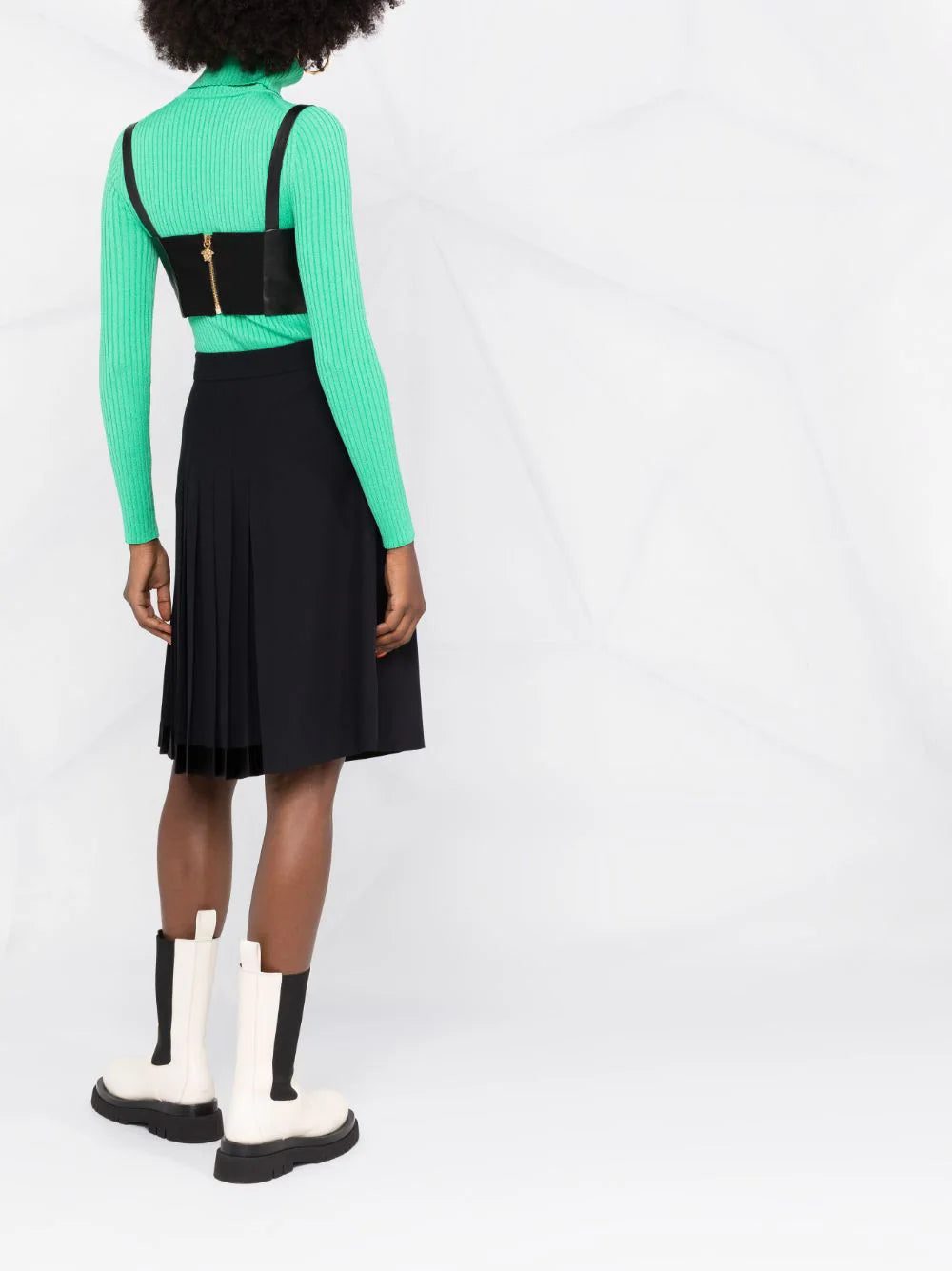 Versace has never shied away from a maximalist aesthetic. Made from soft lambskin, this black bustier top features the signature Medusa motif as a gold-tone plaque on the shoulder straps.