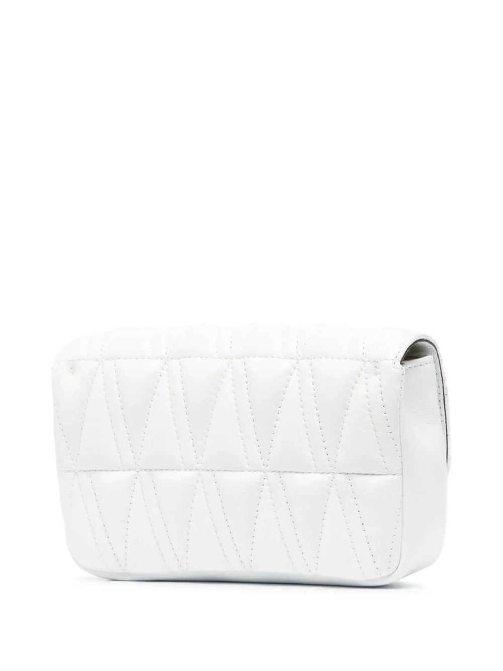 Adding to the signature 'Virtus' line, the Italian fashion house presents this white mini bag. Quilted in a V-pattern, this accessory is punctuated by the central gold-tone metal Barocco letter V, embellished by acanthus leaves taken from Versace’s signature motif.